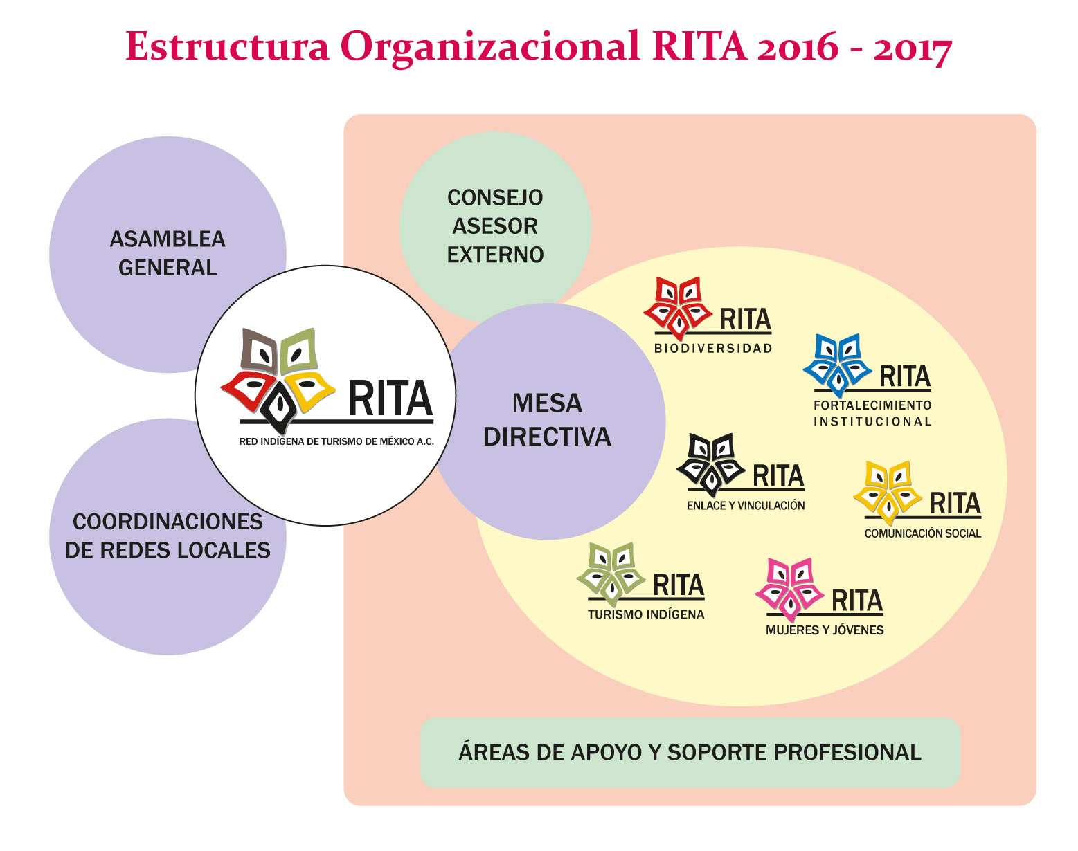 Actualmente se encuentran asociadas más de 120 empresas, con 12 redes estatales de turismo. RITA consta de Coordinaciones de Redes Locales, un Consejo Ejecutivo encabezado por una Mesa Directiva, nombrada por Asamblea General. Esta Mesa Directiva se conforma de 5 Direcciones junto al Área de Enlace y Vinculación, Áreas de Apoyo y Soporte Profesional con flexibilidad y transversalidad, un Consejo Asesor Externo, y Aliados Externos.